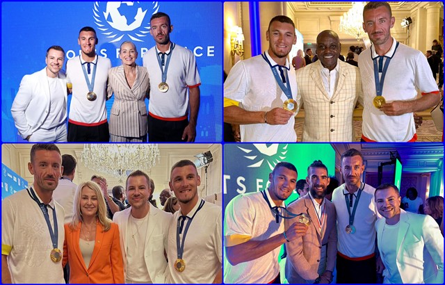 „Băieții de aur de la canotaj, alături de Nadia Comăneci, Sharon Stone, Carl Lewis și Michael Phelps la Gala Sports for Peace 2024.